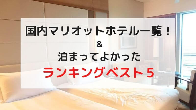 国内マリオットホテルのランキングと一覧リスト【宿泊レビュー付きホテル一覧リスト】(ブランド別)私が宿泊してよかったマリオットグループのホテルランキングです。めちゃくちゃ自分好みで選びましたのでそのあたりはご了承ください。(笑) 宿泊記を読んでいただければそのホテルの楽しみ方がグーンとアップすると思います! -