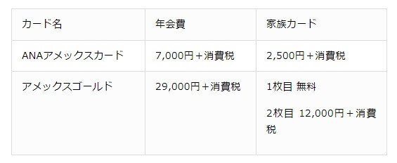 ANAアメックスカードとアメックスゴールドの年会費の比較
