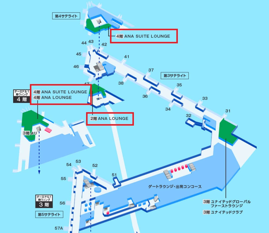 成田空港の国際線出発時に使えるANAラウンジは4つあります。