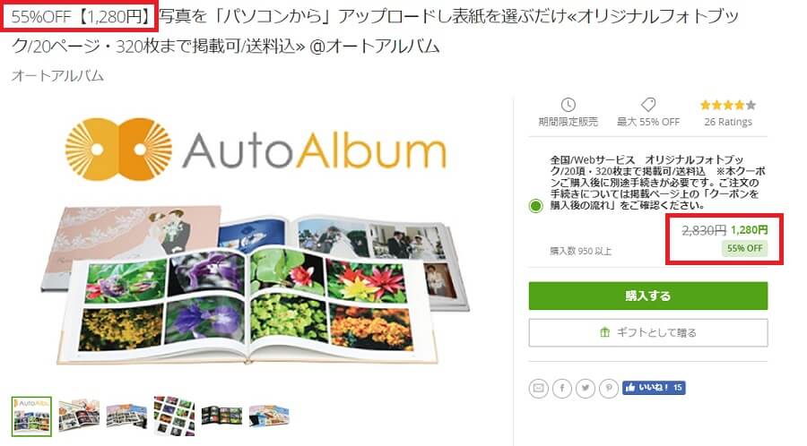 次にGROUPON(グルーポン)55パーセントOFF!!でオートアルバムを購入する