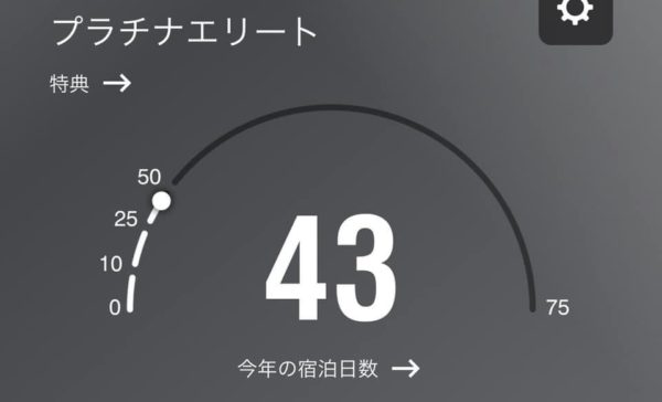 私はすでにプラチナ会員でしたのですでに25泊の実績をもらい、SPGアメックスの継続による5泊分の実績がありますので、残り20泊で2023年までプラチナ会員になることができます。