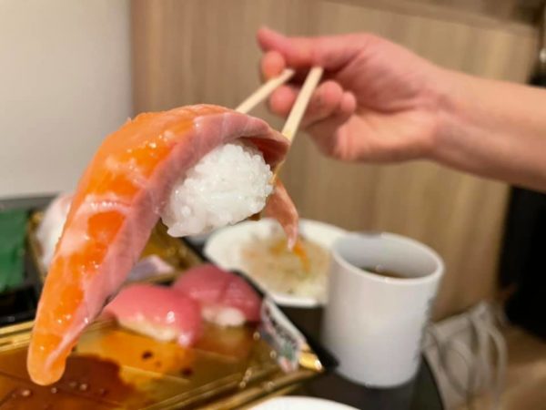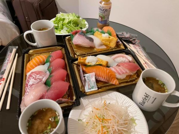 私たちはお寿司を買っていってお部屋で食べたのですが、ここの寿司がすごい!!驚きの分厚さでした!!(普段地元で食べるパック寿司の3倍ぐらいの大きさ)
