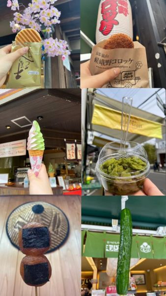 京都駅から嵯峨野まで電車乗り継ぎで。嵯峨野から渡月橋まで歩く道々美味しそうなお店やら可愛いお店が続きます。