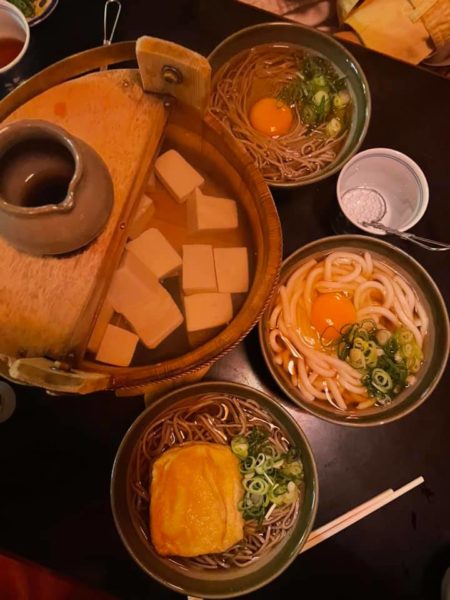 清水寺の中でいただきました。清水寺と夜桜をみながら雰囲気のあるお店でこうして子どもたちと一緒に食べるそば、うどん、湯豆腐はなんとも言えず幸せな気持ちにさせてくれます。