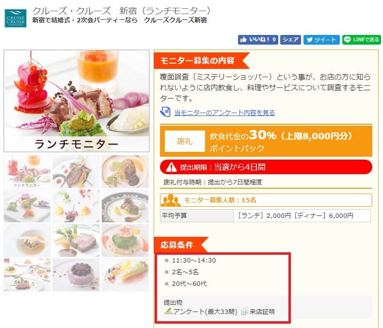 このように応募条件は各店舗ごとにモニタールールが決まっていますので、しっかりと確認しておきます。