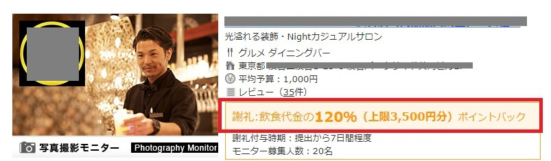 店舗によっては特定の料理の注文や、特定の料理を特定の角度から写真撮影し、提出する必要があります。