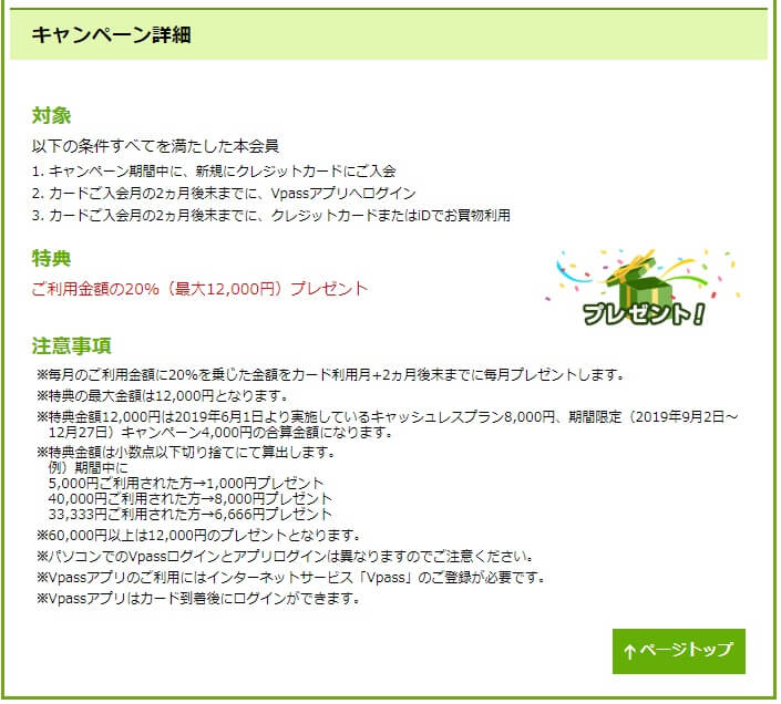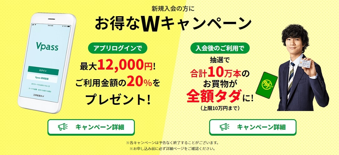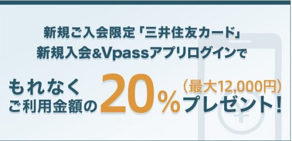 三井住友カード新規入会&Vpassアプリログインで20%プレゼントです。