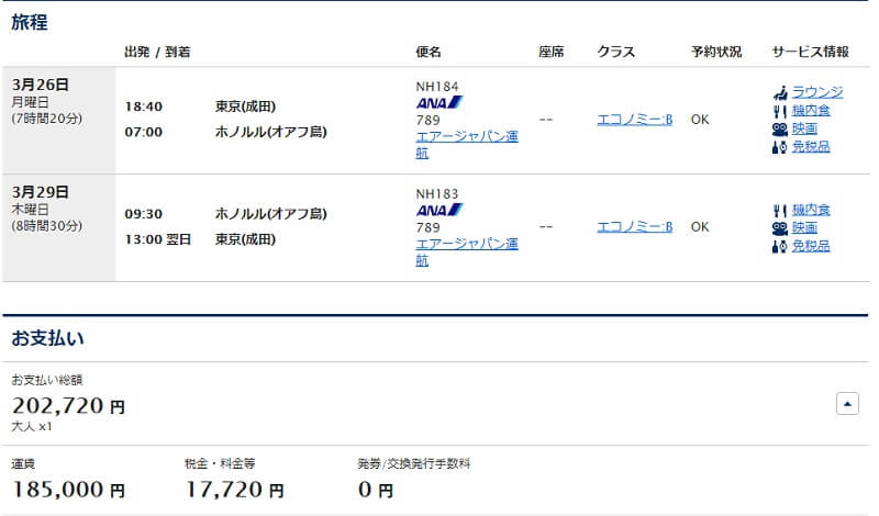 ANAの見積もりを出してみました。正規料金ですと、大人ひとりで185,000円かかってしまいます。