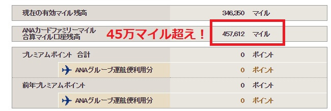 超えています。ここ7ヶ月ぐらいで貯めたマイルがほとんどです。