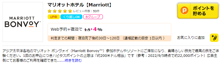 またポイントサイト「ハピタス」(PR)からマリオットと検索し、