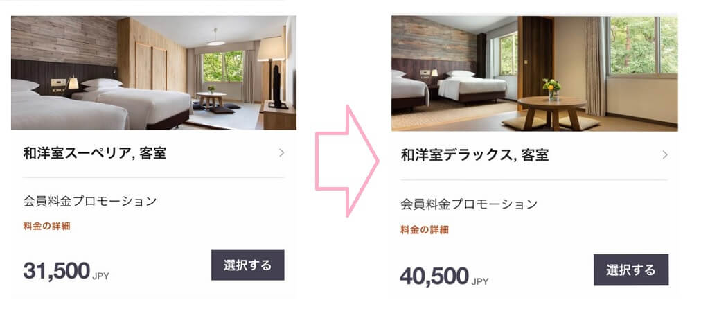 数千円~数万円ほど違うお部屋へのアップグレードなどが特典としてついてきます。