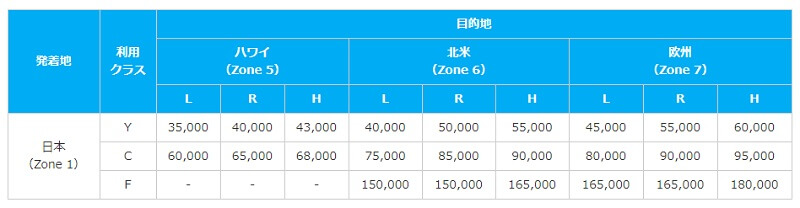になってしまいます。そのために必要なマイル数は下の図を見てもらうとわかりますが、4万マイルです。(シーズンによって変動があります。)