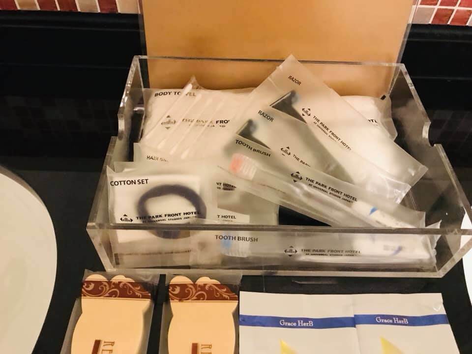 一日USJのパーク内で並んで待ったり、歩いたりした癒やしのためにカモミールの入浴剤と足の指を伸ばせるパットがあったのは、