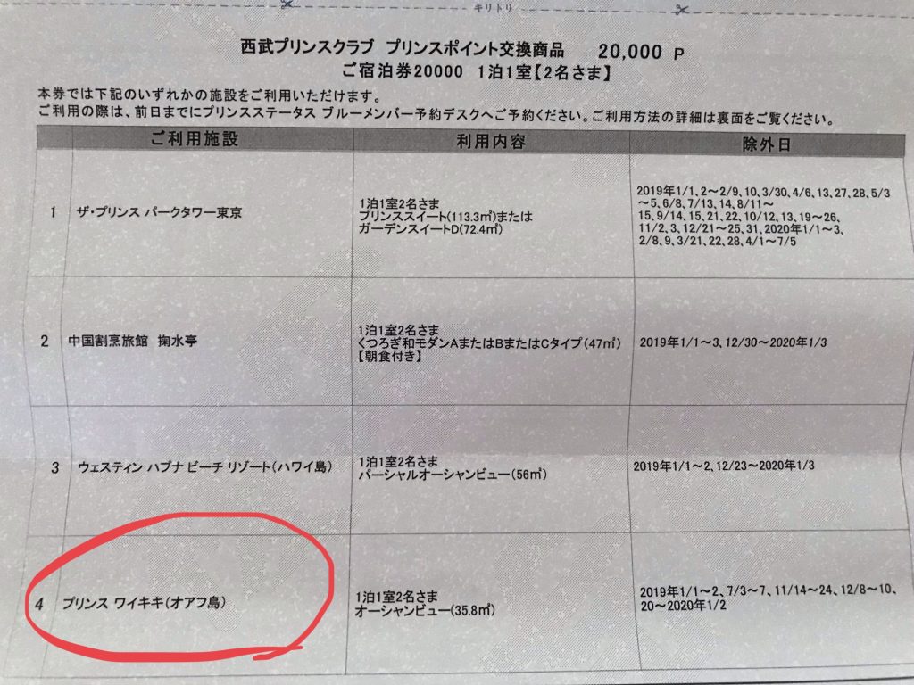 プリンスクラブ交換商品としてのプリンスホテル宿泊