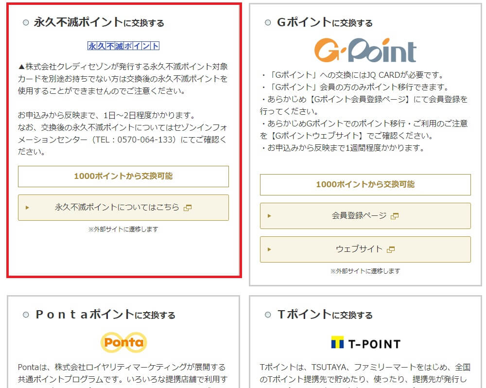 JRキューポ(JQカード)から永久不滅ポイントへ交換する方法