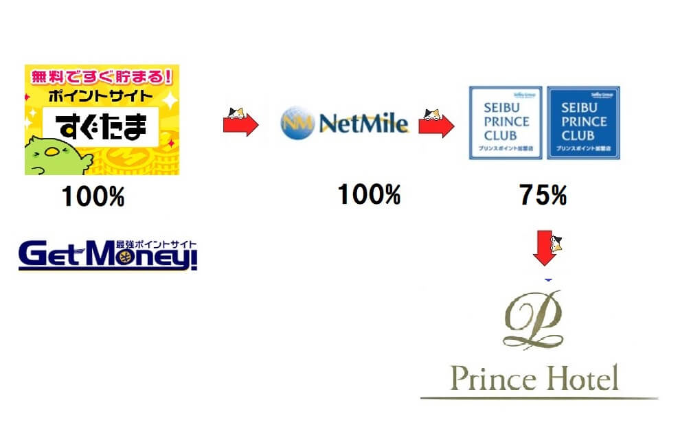 すぐたま経由でプリンスポイントを貯める(交換率75%)
