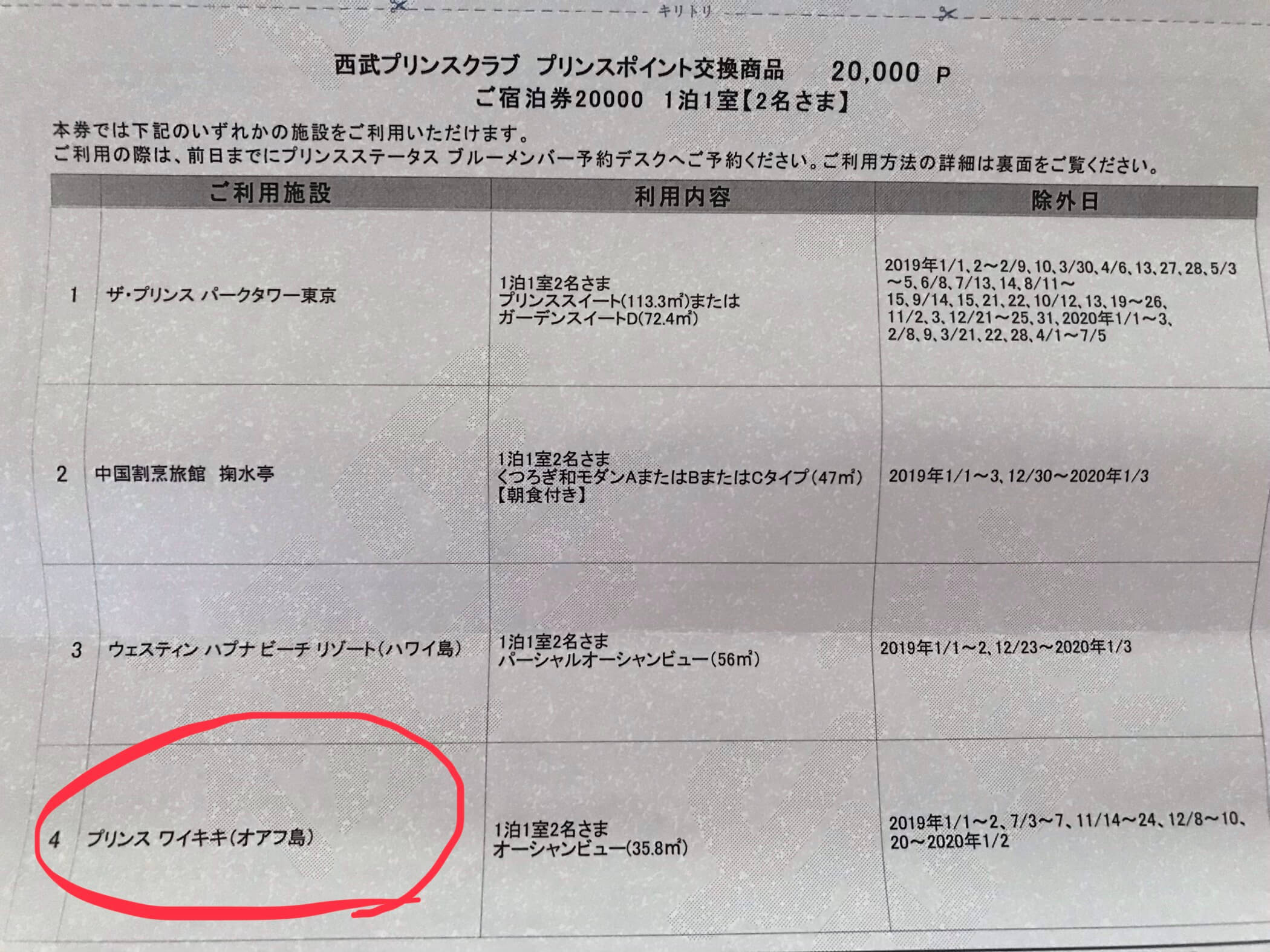 (2023年現在プリンスポイント無料宿泊券への交換は終了しています。プリンスポイントが1ポイント1円分でホテル宿泊ができます。)