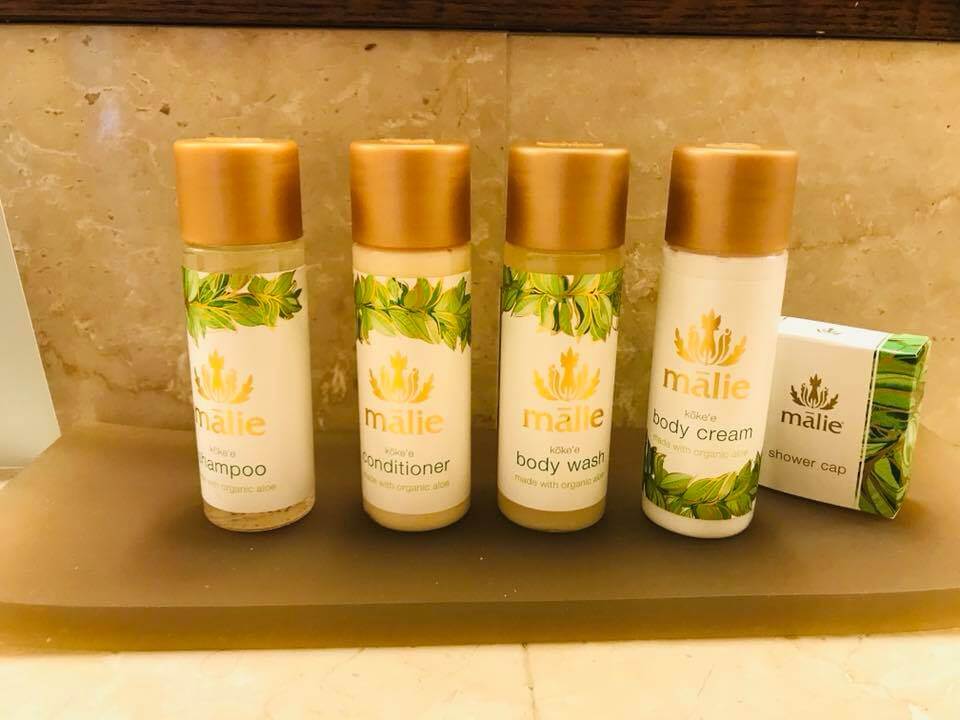 アメニティーは、malieブランドです。マリエオーガニクスは2004年にハワイ州・カウアイ島の大自然から生まれたオーガニック・スパブランド。