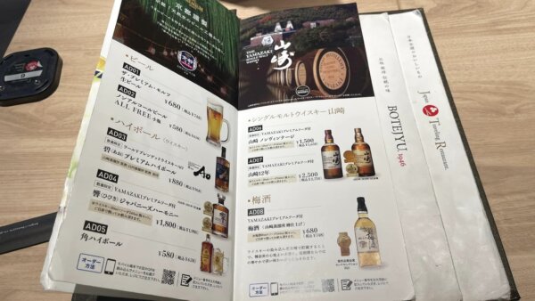ドリンクも「山崎」や「響」などのウイスキーも置いてあります。