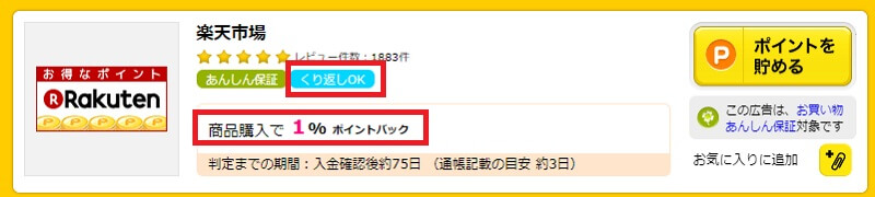 このどちらかのポイントサイトを経由するだけで、楽天市場で買い物をしたものに対して、