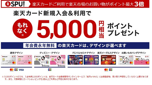 楽天カードでは、カード作成時にキャンペーンを行っていますが、
