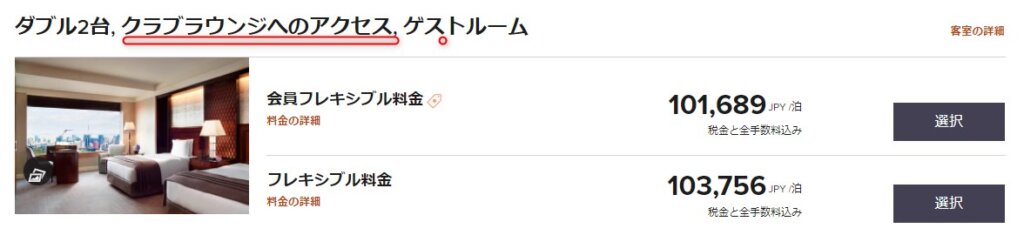 同じように「クラブラウンジへのアクセス」のあるお部屋の予約が必要です。