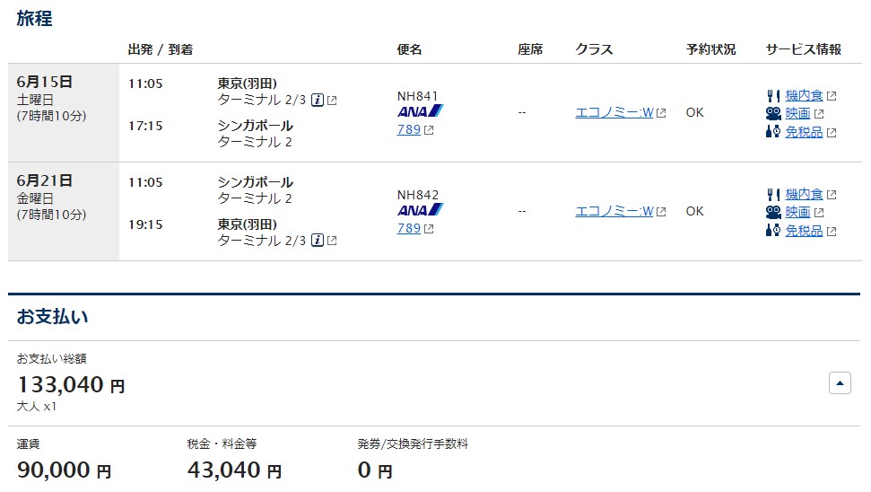 正規のANA航空チケットですと支払い総額は133,400円でした。