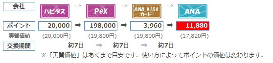 こちらがハピタス→ Pex → ANA VISAカード→ ANAのルートです。