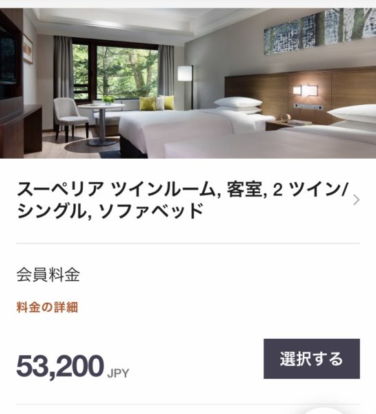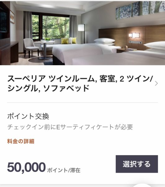 無料宿泊特典では、50,000ポイントまでの部屋に宿泊できます。