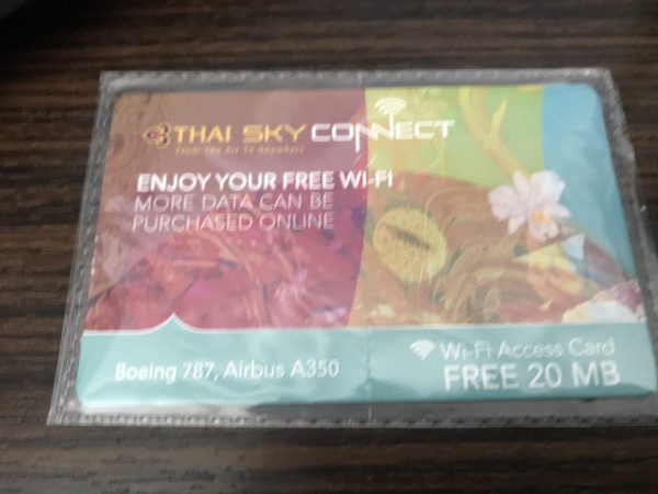 タイ航空のビジネスクラスでは、Wifiカードも無料で配られます。