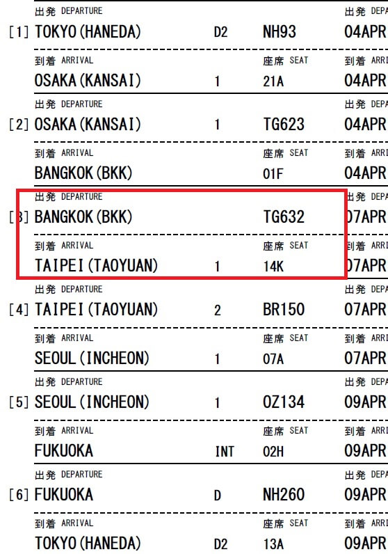 復路は、台湾、韓国に寄ってから日本に戻ります。