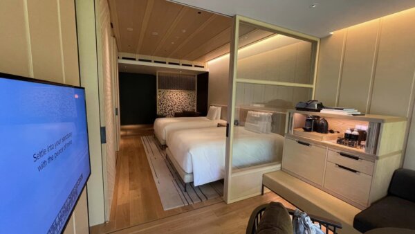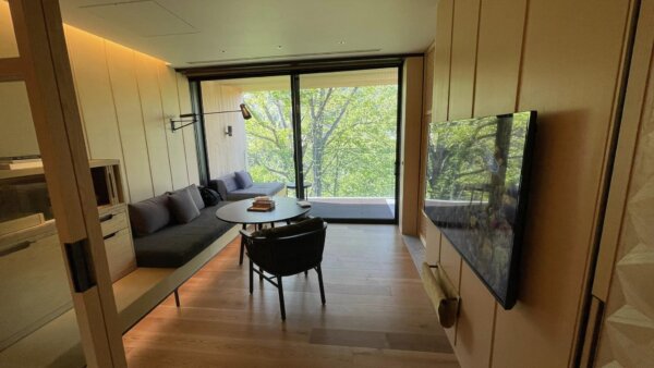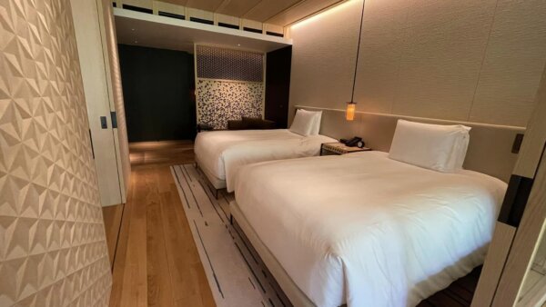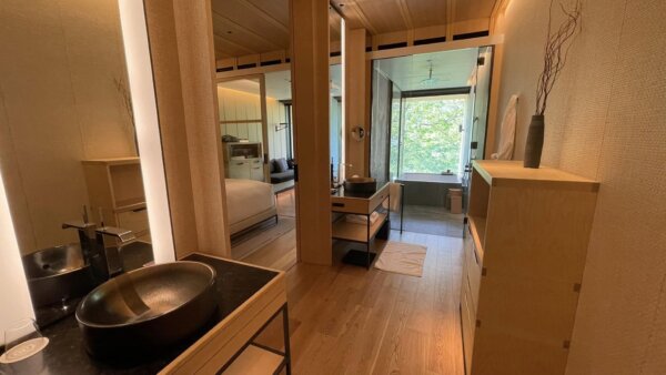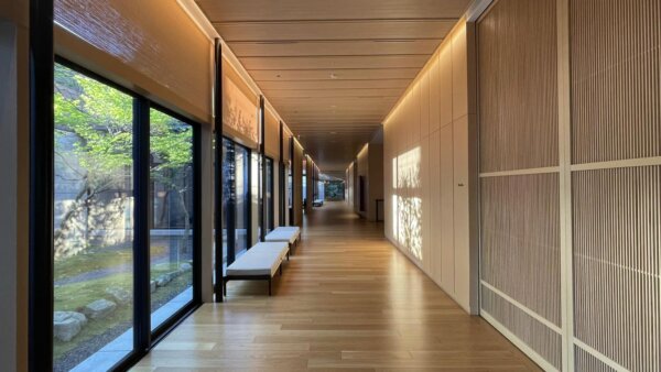 縁側をモチーフにしたラウンジや、ミニマリズムと伝統的要素をブレンドした装飾が特徴的です。