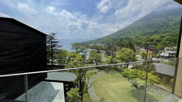 中禅寺湖畔にあり、窓からは男体山(なんたいさん)を一望できる絶景が広がっています。