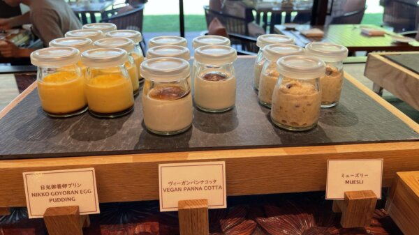 他にもテーブルには「ヴィーガン用のパンナコッタ」「日光御養卵プリン」「ミューズリー」も提供されていて自由に食べることができます。「ヴィーガン用のパンナコッタ」「日光御養卵プリン」が絶品すぎて3つも食べてしまいました。