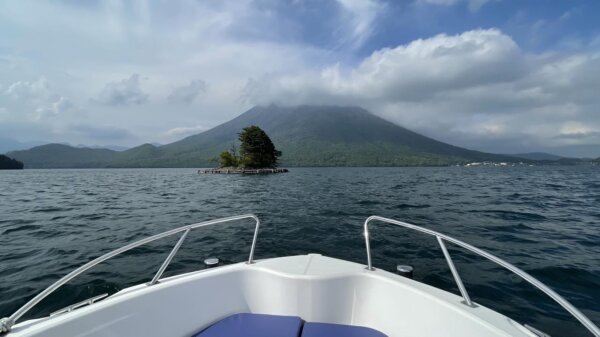 私たちは湖上ジェットに乗り、中禅寺湖を1週ガイドつきで楽しみました。