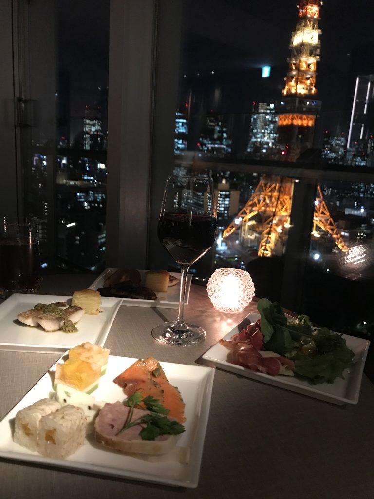 ライトアップされた東京タワーをバックにワインを飲みながら、食事はどんどんと進みます。