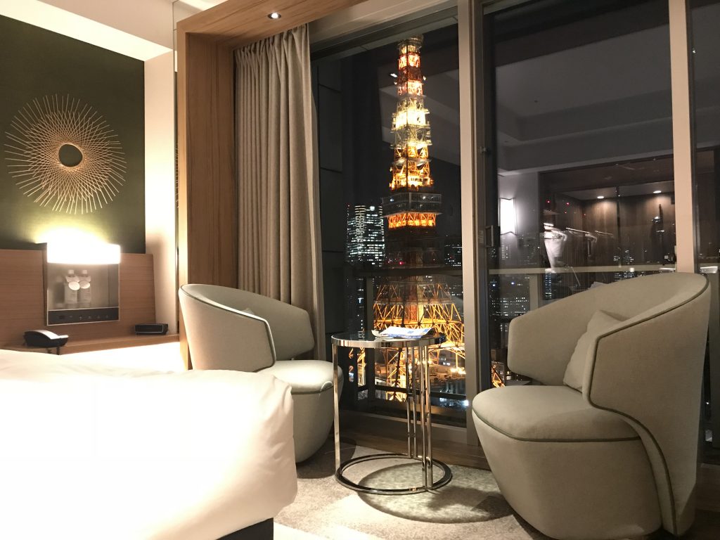 東京タワーが目の前にそびえ立つ、高層階の31階に宿泊しました。