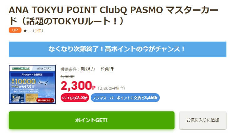 ③  ANA TOKYU POINT ClubQ PASMO マスタカード申し込む